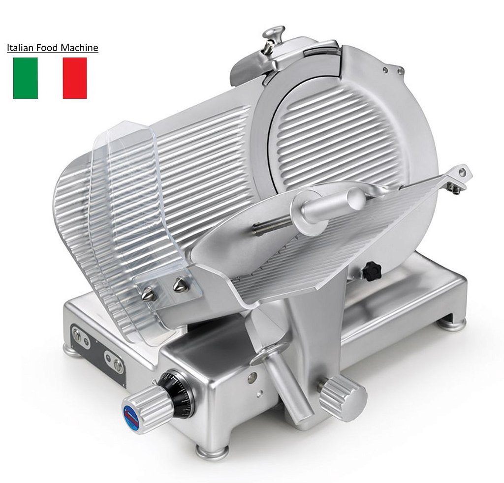Fatiador profissional para fatiar, queijo, mortadela, presunto e diversos tipos de frios. Desenvolvido com tecnologia Italiana e com uma das maiores fabricantes de equipamentos para gastronomia do mercado. Ideal para Supermercados, Padarias, Comércio e Indústria. Através de sua tecnologia oferece uma ótima durabilidade da lâmina com baixo custo de manutenção e fácil utilização.